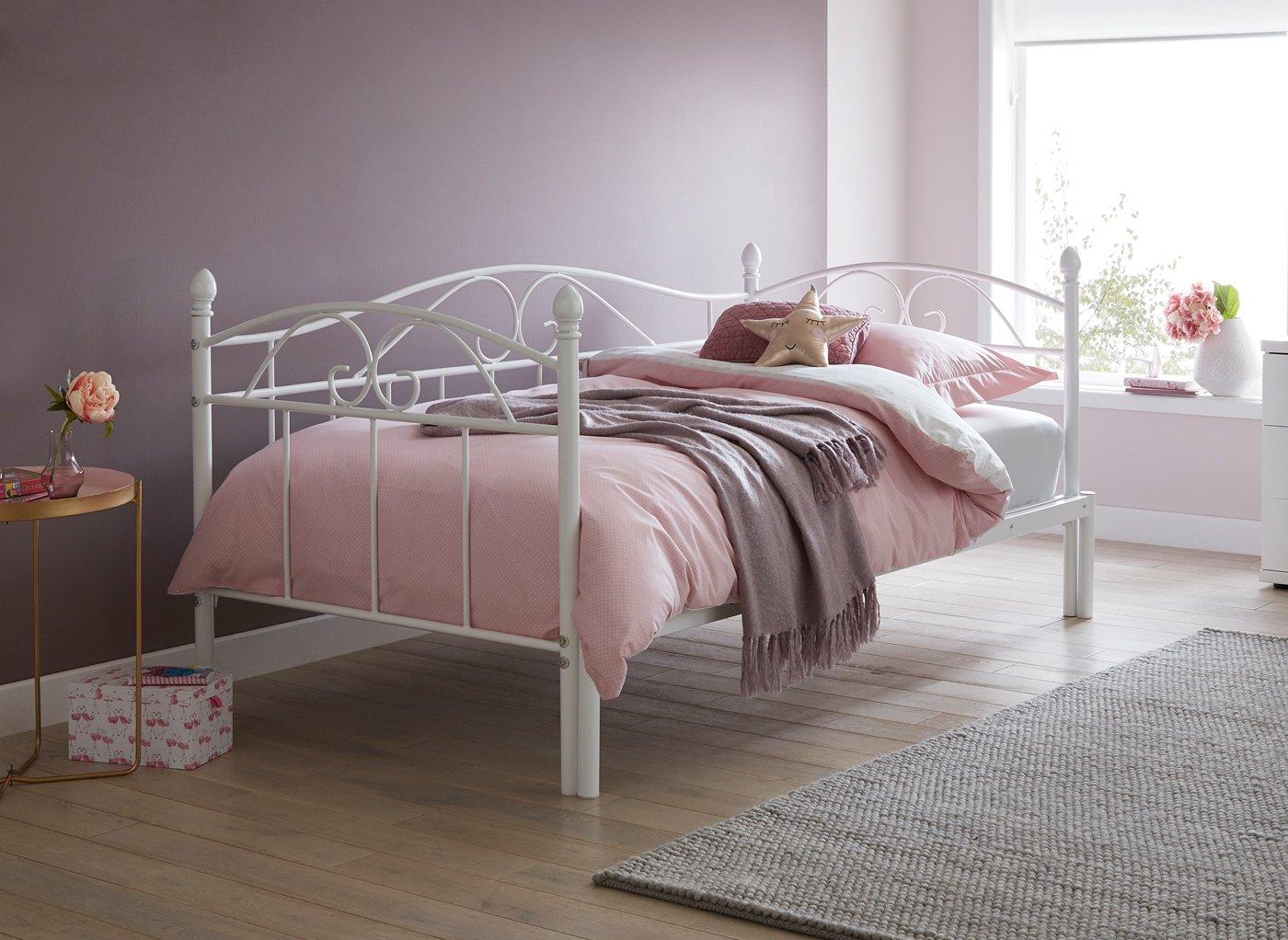 Free delivery to uk mainland. Alternatively, you can get a white wood daybed. This design features charming arched details throughout the white decorative metal daybed with trundle: Bed solidwood white single 3ft day bed children trundle guest solid frame daybed. Harlow white metal day bed with pull out guest trundle.