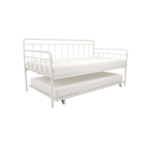 The novogratz bright pop metal daybed and trundle is available in three colors: White, black and turquoise and it fits two twin mattresses. Pilaster designs, twin size white metal roll out trundle bed frame for daybed. Day beds with storage and trundles at argos. The ideal size mattress for use with a white metal daybed with trundle should match that of the trundle's dimensions.